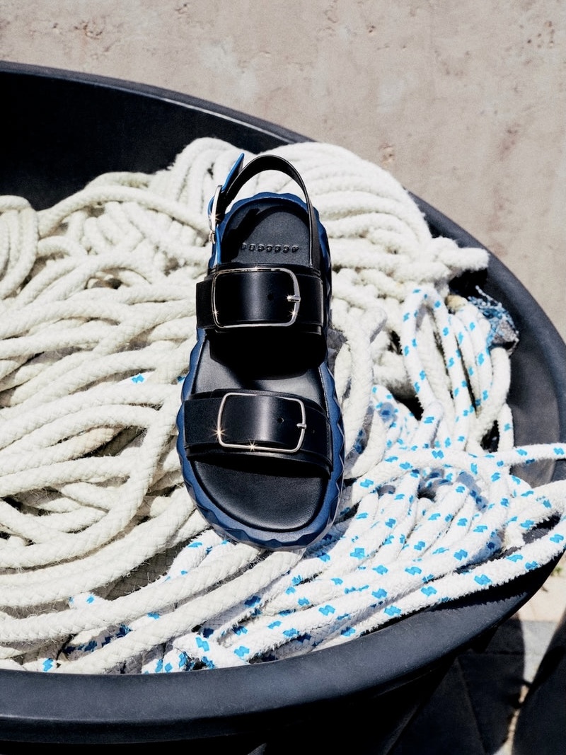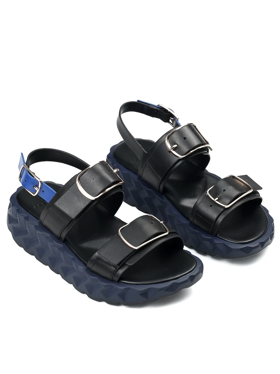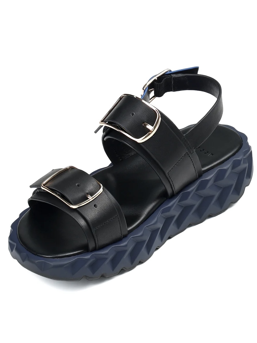 Sandalia de plataforma en piel negra.