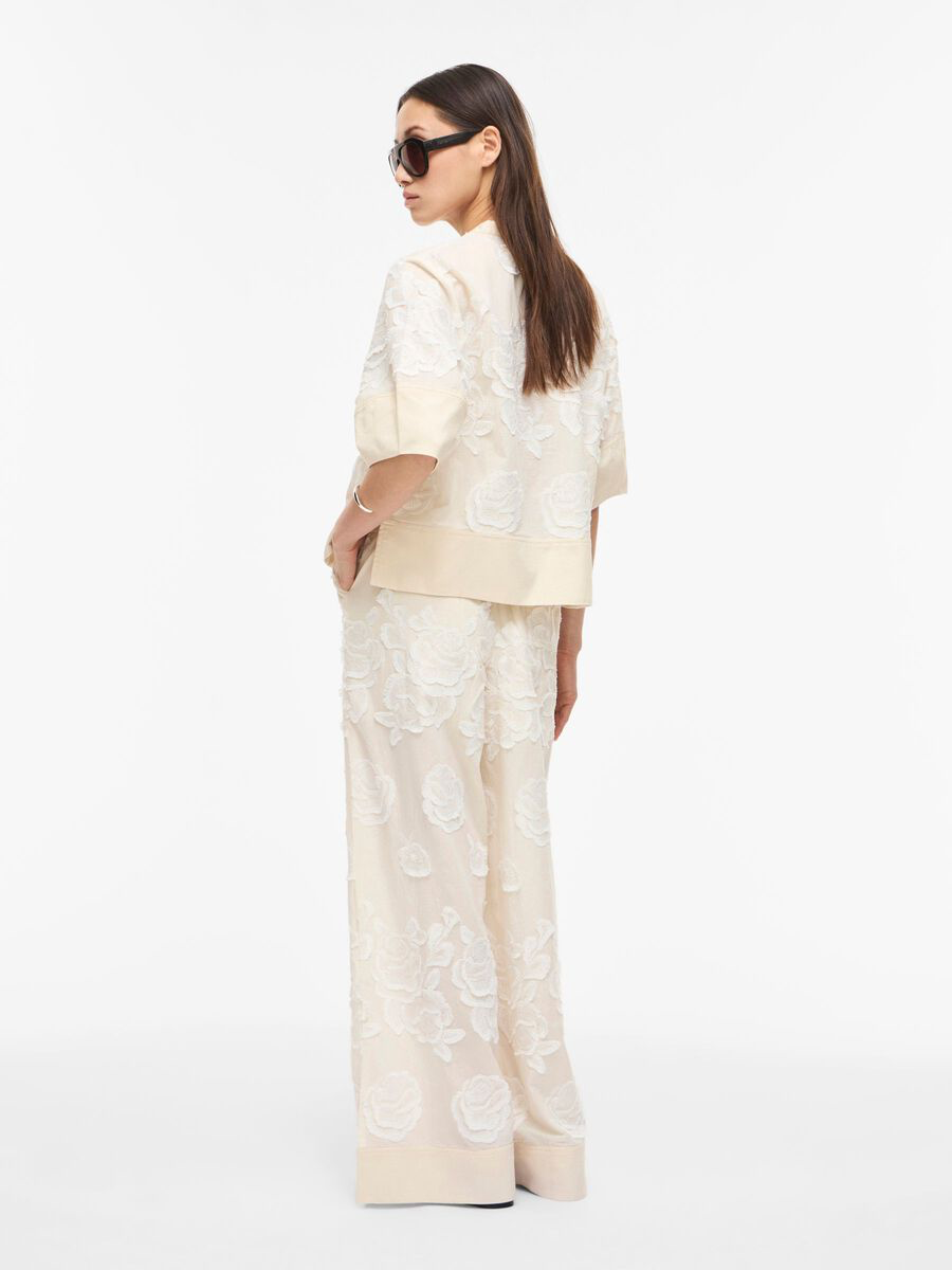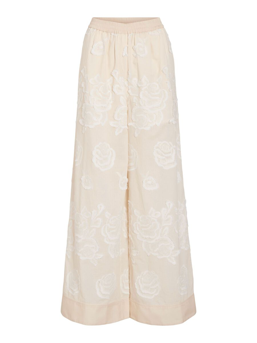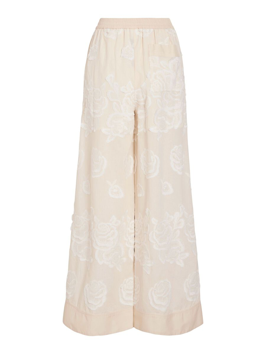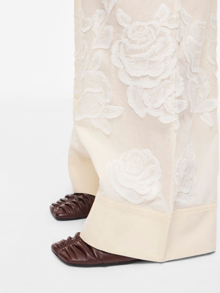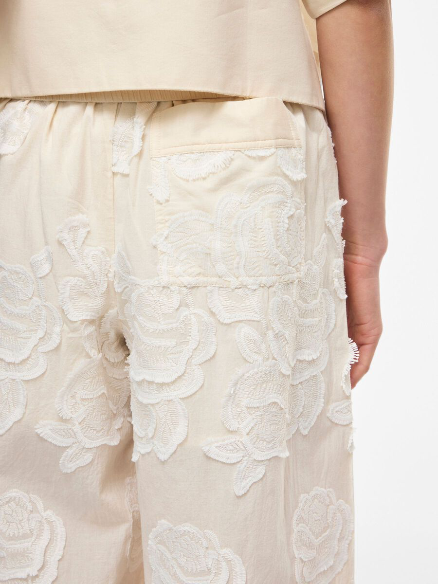 Pantalones de tiro alto con detalles bordados.